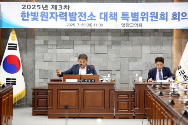 ▲전남 영광군의회는 제3차 한빛원전 대책 특별위원회를 열고 최근 정비 중에 붕산수가 누설된 한빛원전 5호기 원자로 헤드 교체 등을 요구했다. (사진제공 영광군의회)
