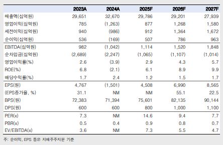 강경태 한국투자증권 연구원은 “목표주가는 적정 기업가치 10조5000억 원을 유통주식수로 나눠 계산했으며 적정 기업가치는 12개월 선행 순자산 8조9000억 원에 목표 주가순자산비율(PBR) 1.18배를 적용해 산출했다”고 설명했다.