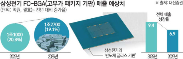 삼성전자 파운드리(반도체 위탁생산)가 테슬라의 차세대 인공지능(AI) 반도체 ‘AI6’ 생산을 맡으면서, 계열사인 삼성전기에도 훈풍이 불고 있다. AI6에 탑재될 고성능 반도체 패키지 기판 FC-BGA(플립칩 볼그리드어레이)를 삼성전기가 공급하기로 하면서, 향후 고부가 반도체 기판 시장에서 입지를 더욱 강화할 것으로 관측된다.
