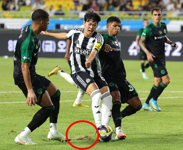 양 팀 선수들은 공을 다루는 데 애를 먹었고 실수가 속출하며 경기 흐름도 끊겼다. 팀 K리그 이창민은 “훈련장보다도 못한 최악의 잔디”라며 강하게 비판했고 뉴캐슬 에디 하우 감독도 “날씨와 환경이 어려웠다”고 아쉬움을 내비쳤다.