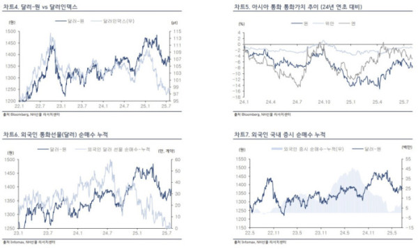 위재현 NH선물 연구원은 "이는 일본, EU 협상 체결 당시와 같이 위험 선호 측면보다, 대규모 달러 수요로 해석되며 강달러를 부추길 가능성 존재한다"며 "게다가 관세라는 변수를 제외하더라도, 전일 미국의 경제지표와 연방공개시장위원회(FOMC)의 매파적 스탠스 또한 달러화 반등을 지지하는 재료"라고 설명했다.