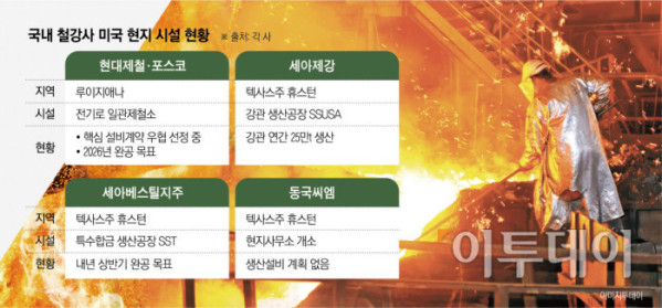 미국과의 관세 협상이 마무리됐지만, 철강·알루미늄 제품에 대한 품목별 50% 고율 관세가 유지됐다. 이에 국내 철강사들의 미국 현지 설비 투자 현황에 이목이 쏠리고 있다.