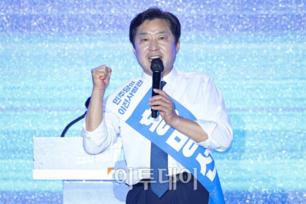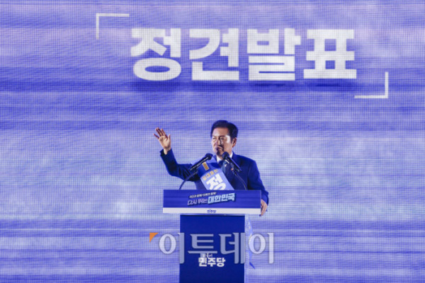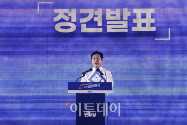 ▲정청래 더불어민주당 대표 후보가 2일 경기 고양시 킨텍스에서 열린 제2차 임시전국당원대회에서 정견발표를 하고 있다. 조현호 기자 hyunho@