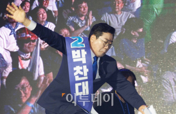 ▲박찬대 더불어민주당 대표 후보가 2일 경기 고양시 킨텍스에서 열린 제2차 임시전국당원대회에서 정견발표를 하고 있다. 조현호 기자 hyunho@