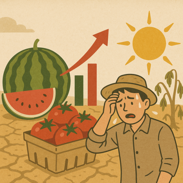 ▲폭염에 치솟는 농산물 가격...수박, 토마토 값이 특히 폭등세 (일러스트=ChatGPT/무단전재 재배포금지)