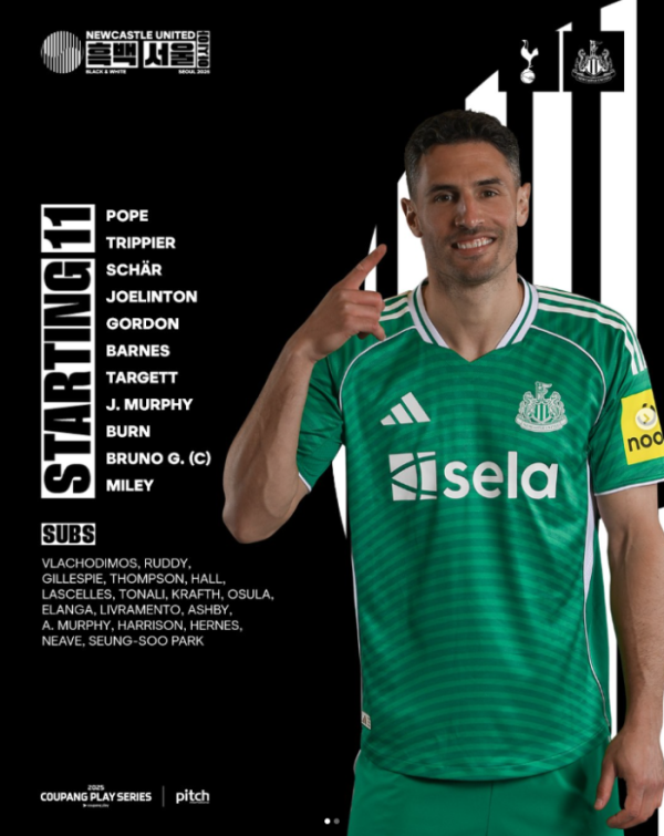 여기에 맞서는 뉴캐슬은 닉 포프가 골키퍼 장갑을 낀다. 맷 타겟, 댄 번, 파비안 셰어, 키어런 트리피어가 포백 라인을 구성하고 중원에 브루노 기마랑이스, 루이스 마일리, 조엘링톤이 나선다. 최전방에는 하비 반스, 제이콥 머치, 안토니 고든이 스리톱으로 배치됐다.