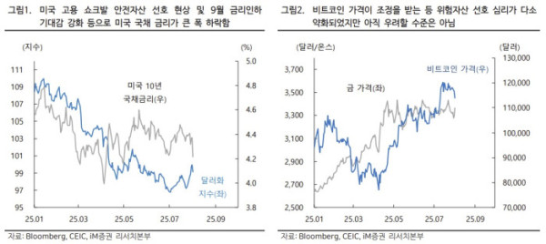 4일 iM증권은 "지난주 관세 협상, 7월 연방공개시장위원회(FOMC) 회의, 7월 고용지표 등 굵직한 이벤트로 달러화가 큰 폭의 변동성 장세를 보였지만 이번 주에는 재료 부재 속에 관망세를 보일 것으로 예상된다"며 이같이 밝혔다.