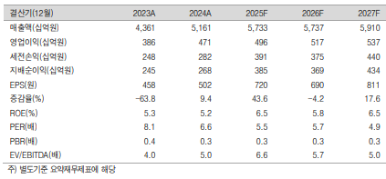 4일 신영증권은 팬오션에 대해 코로나 팬데믹 기간에 형성된 운송운임 프리미엄이 사라졌음에도 불구하고, 드라이벌크선 위주의 수익구조 비중을 줄이면서 안정적인 이익체력을 갖추고 있다고 평가했다. 목표주가를 6000원으로 상향하고, 투자의견 '매수'를 유지했다. 전 거래일 종가는 3960원이다.