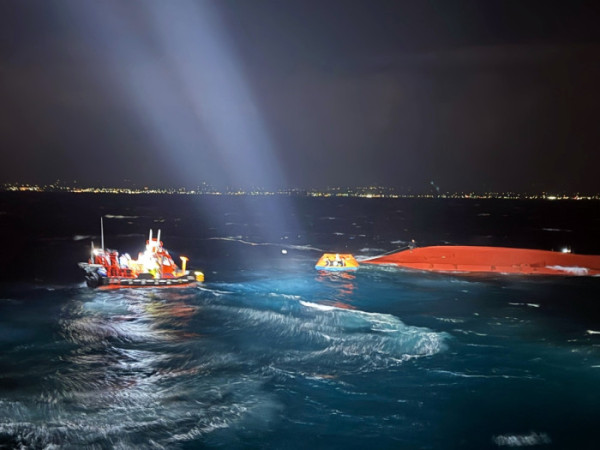 ▲올해 2월 12일 오후 제주 서귀포시 해상에서 10명이 탄 어선 '2066재성호'가 전복되는 사고가 발생해 해경이 선원 구조에 나서고 있다. (뉴시스)