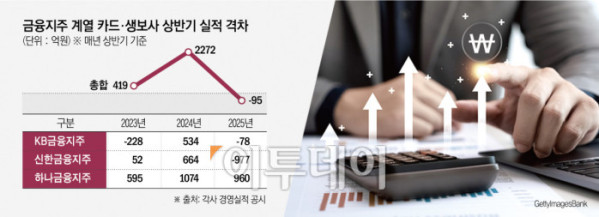 손해보험사의 실적 확대도 3대 금융지주 비은행 이익의 중심축을 보험사로 이동시키는데 기여하고 있다. KB금융의 경우 KB국민카드의 상반기 당기순이익이 2020년 1638억 원에서 2025년 1813억 원으로 소폭 증가하는 데 그쳤지만 KB손해보험은 같은 기간 1440억 원에서 5581억 원으로 큰 폭으로 늘었다. 순이익 격차는 2020년 198억 원에서 2025년 -3768억 원으로 반전됐다.