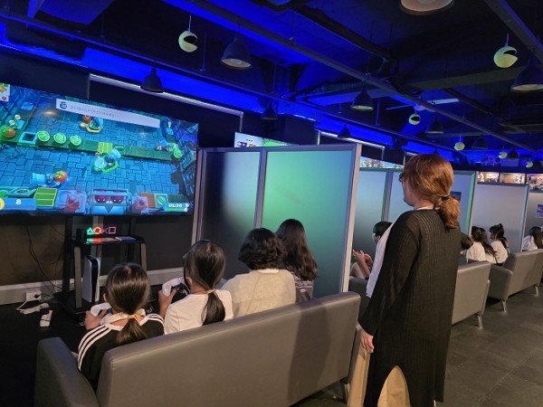 ‘게임진로특강’에서는 개발·디자인·마케팅·e스포츠 등 여러 분야에서 자신의 흥미와 적성에 맞는 직업을 발견하고 게임 개발자, 디자이너, 프로듀서 등 다양한 게임 관련 직무를 알아보는 시간을 가졌으며, ‘게임체험’은 콘솔 게임과 VR 게임으로 구성하여 플레이스테이션, 닌텐도 스위치 등 기기를 통해 게임의 시각, 오디오 기술을 경험해 볼 수 있었다.