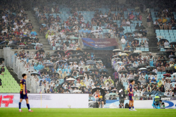 FC바르셀로나가 다시 한 번 ‘클래스의 차이’를 증명했다. 15년 만에 한국을 찾은 바르셀로나는 4일 대구스타디움에서 열린 대구FC와의 친선 경기에서 5-0 대승을 거두며 방한 2연전을 전승으로 마무리했다. 폭우 속에서도 4만 5천여 관중이 지켜보는 가운데 라민 야말과 가비 등 ‘영건’들의 맹활약이 빛났다.
