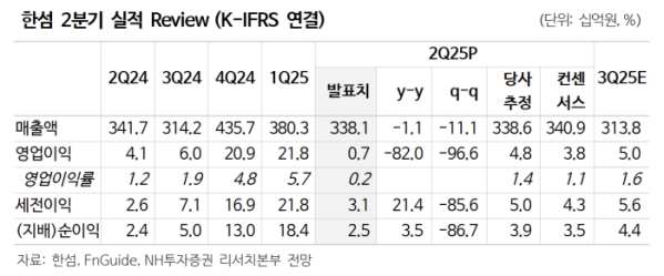 한섬의 2분기 실적은 어닝쇼크를 기록했다. 매출액은 연결 기준 전년 동기 대비 1% 감소한 3381억 원, 영업이익은 82% 줄어든 7억 원이다. 내수 소비 침체로고가 브랜드 할인 판매와 과년차 재고 판매 비중이 상승한 데다, 수입 편집 숍라인 확장 등으로 원가율 상승 등이 주요인이었다.