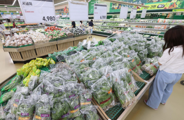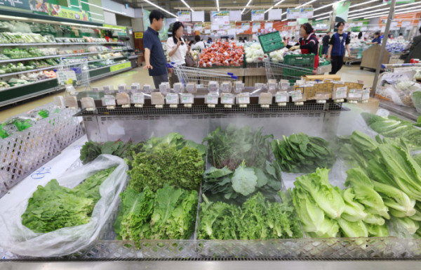지난달 소비자물가가 가공식품·수산물 등 가격이 오르면서 두 달째 2%대 상승세를 이어갔다. 폭염·폭우 영향으로 과일·채소 등 농산물 가격이 강세를 보였다. 소비쿠폰 수요가 많은 한우 등의 물가도 전달보다 상승 폭이 커졌다. 통계청이 5일 발표한 '7월 소비자물가동향'을 보면 지난 달 소비자물가지수는 116.52(2020년=100)로 1년 전보다 2.1% 올랐다. 소비자물가지수 상승률은 올해 1월부터 2%대를 기록하다가 지난 5월 1.9%로 떨어졌으나 6월부터는 두 달째 다시 2%대를 유지하고 있다. 이날 서울의 한 대형마트에서 시민들이 장을 보고 있다.