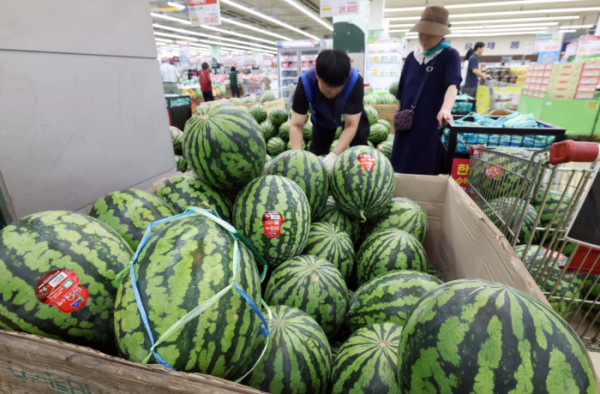 ▲지난달 소비자물가가 가공식품·수산물 등 가격이 오르면서 두 달째 2%대 상승세를 이어갔다. 폭염·폭우 영향으로 과일·채소 등 농산물 가격이 강세를 보였다. 소비쿠폰 수요가 많은 한우 등의 물가도 전달보다 상승 폭이 커졌다. 통계청이 5일 발표한 '7월 소비자물가동향'을 보면 지난 달 소비자물가지수는 116.52(2020년=100)로 1년 전보다 2.1% 올랐다. 소비자물가지수 상승률은 올해 1월부터 2%대를 기록하다가 지난 5월 1.9%로 떨어졌으나 6월부터는 두 달째 다시 2%대를 유지하고 있다. 이날 서울의 한 대형마트에서 시민들이 장을 보고 있다. 신태현 기자 holjjak@