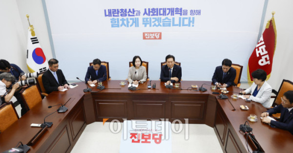 ▲정청래 더불어민주당 대표와 김재연 진보당 상임대표가 5일 서울 여의도 국회에서 만나 대화를 하고 있다. 조현호 기자 hyunho@