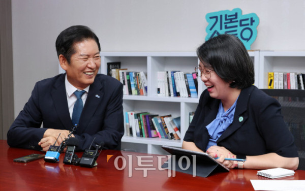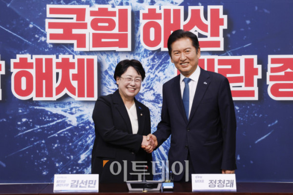 ▲정청래 더불어민주당 대표와 김선민 조국혁신당 대표 권한대행이 5일 서울 여의도 국회에서 만나 대화를 하고 있다. 조현호 기자 hyunho@