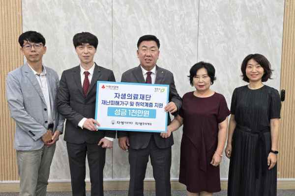 최근 수해 피해 지역 복구와 지역민 일상 회복을 위해 각계각층에서 온정의 손길이 이어지고 있다. 자생의료재단도 이 같은 흐름에 일조하고자 5일 충북 청주시 수해 피해 지역 주민들을 위한 1000만 원의 성금을 기탁했다고 6일 밝혔다.