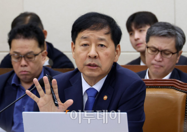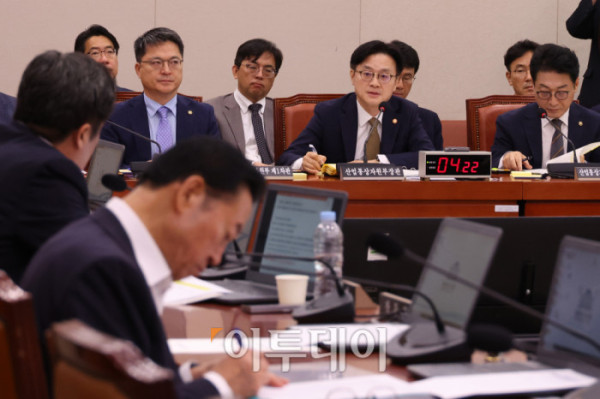 ▲김정관 산업통상자원부 장관이 6일 서울 여의도 국회에서 열린 산업통상자원중소벤처기업위원회 전체회의에서 한미 관세 협상 결과 관련 의원 질의에 답하고 있다. 고이란 기자 photoeran@