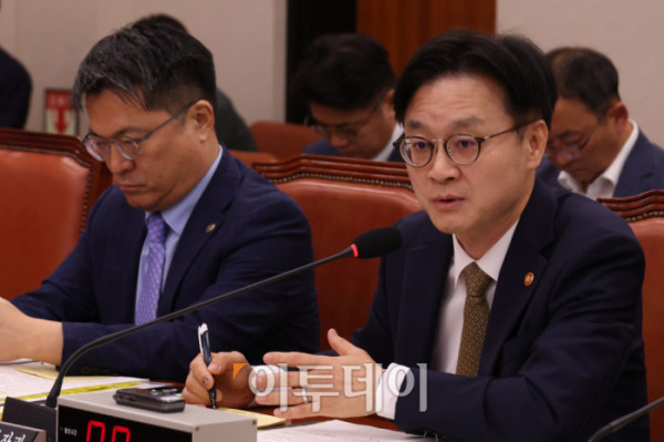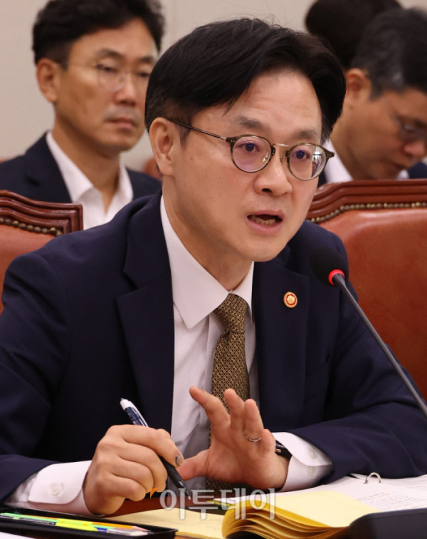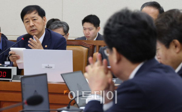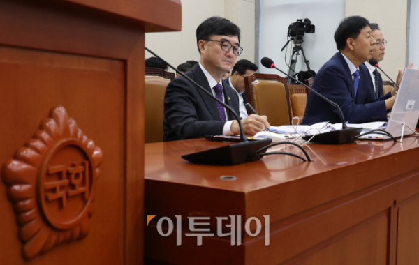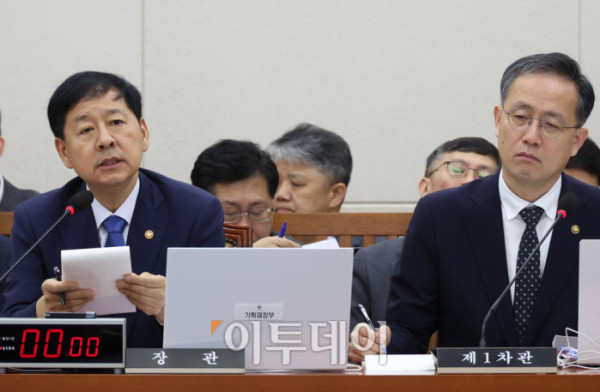 ▲구윤철 경제부총리 겸 기획재정부 장관이 6일 서울 여의도 국회 기획재정위원회 전체회의에서 한미 관세 협상 결과 관련 의원 질의에 답하고 있다. 오른쪽은 이형일 1차관. 고이란 기자 photoeran@