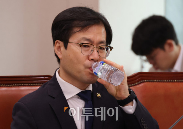 ▲여한구 산업통상자원부 통상교섭본부장 6일 서울 여의도 국회에서 열린 산업통상자원중소벤처기업위원회 한미 관세 협상 결과 현안질의 전체회의에서 물을 마시고 있다. 고이란 기자 photoeran@