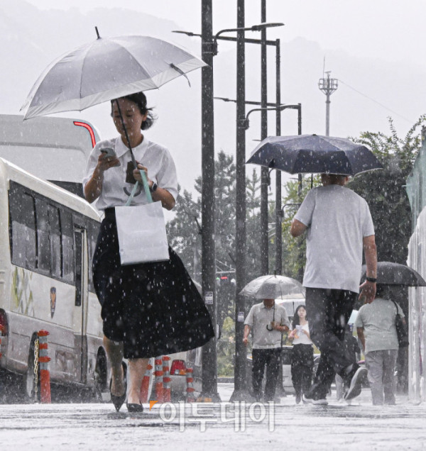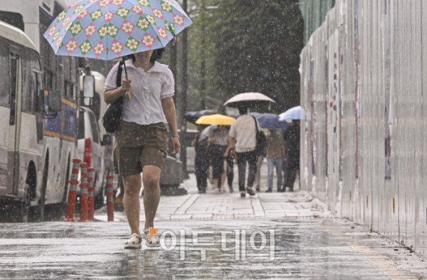 ▲전국 대부분 지역에 돌풍과 함께 천둥·번개를 동반한 많은 비가 내린 6일 서울 종로구 광화문역 일대에서 우산을 쓴 시민들이 내리는 비를 피해 발걸음을 재촉하고 있다. 기상청에 따르면 새벽에 중부지방과 경북 북부에 비가 시작돼 오전부터 그 밖의 남부지방과 제주도로 확대될 것으로 예보했다. 조현호 기자 hyunho@
