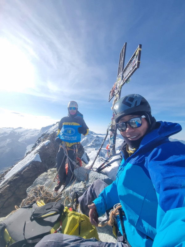 ▲(왼쪽부터) 코오롱스포츠 앰배서더 우석주, 문성욱 산악인이 마테호른을 완등한 모습 (사진제공=코오롱인더스트리FnC부문)