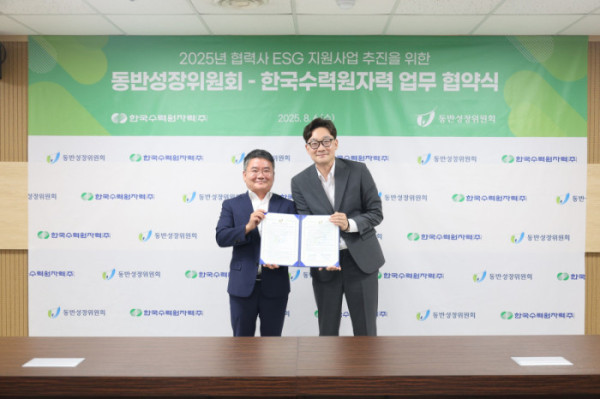 한수원은 6일 동반성장위원회와 ‘2025년 협력사 ESG 지원사업’ 추진을 위한 업무협약을 체결했다. 이번 협약은 협력사의 체계적인 ESG 경영 도입을 지원함으로써, 한수원 공급망 전반의 지속가능성을 확보하고 상생의 ESG 생태계를 조성하는 데 목적이 있다.