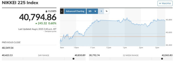 ▲닛케이225지수 6일 종가 4만794.86 (마켓워치)