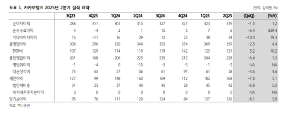최정욱 하나증권 연구원은 “카카오뱅크 올해 2분기 순익은 전년 대비 5% 증가한 1263억 원으로 예상보다 대출성장률이 낮았고 순이자마진(NIM)이 더 크게 하락했지만, 대손비용이 예상보다 적었던 점이 실적 기대치에 부합했다”고 밝혔다.