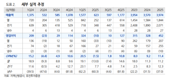 황 연구원은 “올해 3분기는 매출이 전년 대비 2% 늘어난 5975억 원, 같은 기간 영업이익은 64% 감소한 105억 원으로 열요금 동결 속 전력 실적으로 전사가 전 분기 대비 흑자 전환할 전망”이라고 진단했다.