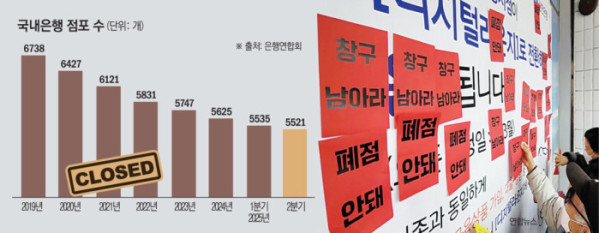 국내 은행 점포가 지난 5년 반 동안 1200곳 넘게 줄어든 것으로 나타났다. 비대면 금융 확산과 경영 효율화가 주요 배경이지만 고령층·농어촌 지역 등 취약계층의 금융 접근성 저하 우려가 커지고 있다.