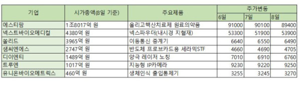 올해는 총 22개사 중 △에스티팜 △넥스트바이오메디컬 △쏠리드 △샘씨엔에스 △디이엔티 △트루엔 △유니온바이오메트릭스 등 7개사가 신규 등재됐다. 이들은 각각 바이오·헬스케어, 5G 통신장비, 반도체 및 디스플레이 검사장비, 영상보안, 정밀의료기기 등 첨단 산업 분야에 포진해 있다.