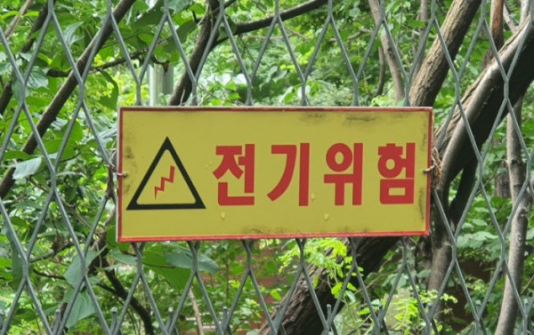 ▲전기 사고로 이주노동자가 사망한 10일, 전남 고흥의 한 새우양식장에 전기 위험 경고 표지판이 설치되어 있다. (사진제공=연합뉴스)