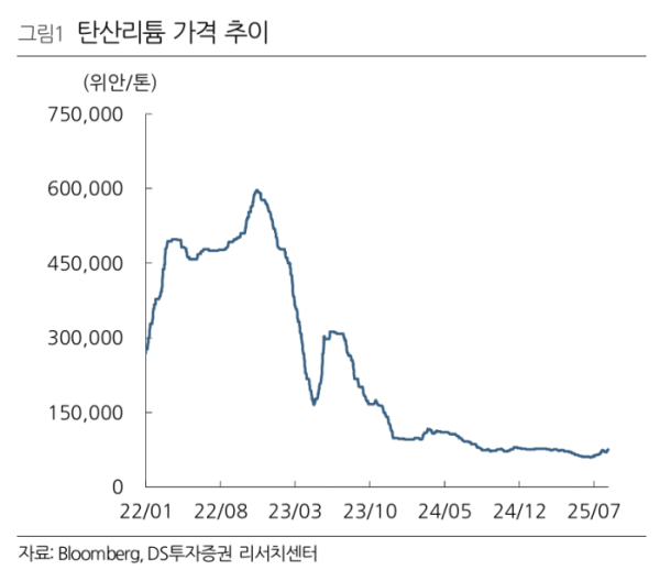 DS투자증권은 12일 중국 이차전지 기업 CATL의 리튬 감산 조치 발표와 수요 회복 확인이 더해지면 구조적인 리튬 가격 상승으로 연결될 것이라고 전망했다. 그러면서 업종 최상위 수혜주로 에코프로비엠과 엘앤에프를 제시했다.