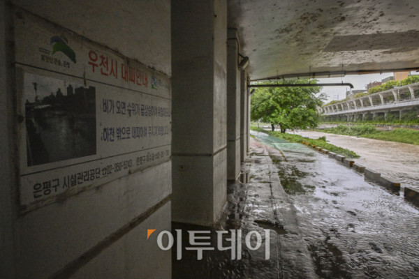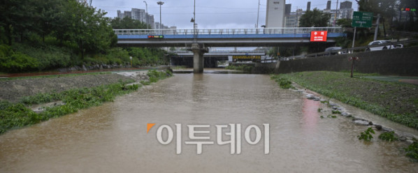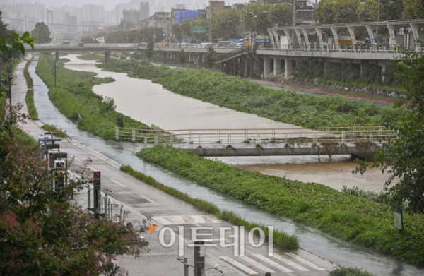 ▲서울 등 경기도 일대와 충남 서해안에 호우주의보가 발효된 13일 서울 서대문구 불광천이 내리는 비로 인해 수위가 높아져 있다. 이날 새벽부터 서울에 내린 많은 비로 청계천, 안양천 등 시내 전체 29개 하천의 출입이 통제됐다. 서울 동북·서남·서북권에는 오전 6시 30분을 기해 호우주의보가 내려지며, 서울시는 강우 상황과 관련해 '주의' 단계인 1단계를 발령하고 비상근무에 들어갔다. 조현호 기자 hyunho@