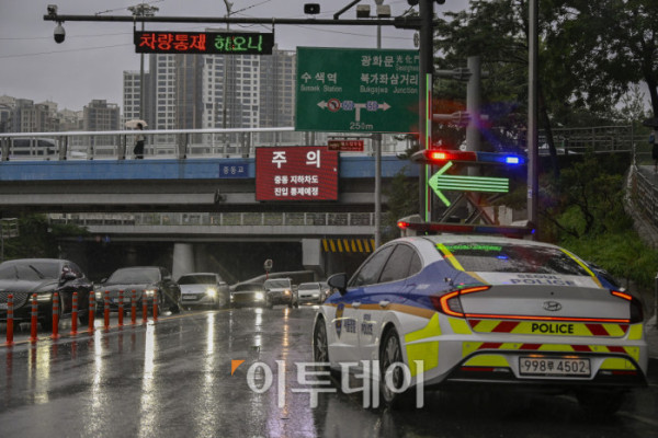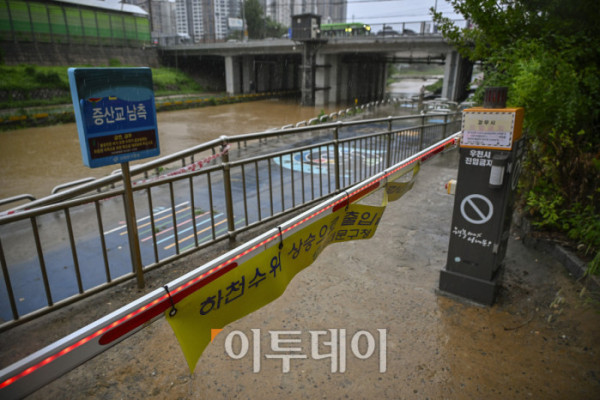 ▲서울 등 경기도 일대와 충남 서해안에 호우주의보가 발효된 13일 서울 서대문구 증산교 하부도로가 통제되고 있다. 이날 새벽부터 서울에 내린 많은 비로 청계천, 안양천 등 시내 전체 29개 하천의 출입이 통제됐다. 서울 동북·서남·서북권에는 오전 6시 30분을 기해 호우주의보가 내려지며, 서울시는 강우 상황과 관련해 '주의' 단계인 1단계를 발령하고 비상근무에 들어갔다. 조현호 기자 hyunho@