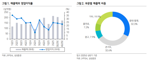 최 연구원은 "3분기에는 스트레이 키즈의 유럽 스타디움 투어 실적, 정규 4집 발매, 트와이스의 정규 4집, 일본 정규 6집, 채영 솔로 1집 성적과 아시아 투어 성과가 반영될 예정"이라며 "넷플릭스 ‘케이팝 데몬 헌터스’의 글로벌 흥행으로 OST 가창자로 참여한 트와이스의 노래가 글로벌 스트리밍 순위에서 자체 최고 순위를 경신하고 있어 하반기에 음원 매출에도 긍정적으로 기여할 전망"이라고 내다봤다.