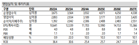 설 연구원은 그러면서 "메리츠금융지주는 지속적으로 업종 내 최상위 수준의 자기자본이익률(ROE)과 요구수익률에 기반한 주주환원 정책 등 자본비용과 리턴에 기반한 효율적인 자본 배분 구조를 지속하고 있는 등 변함없는 효율성 중심 경영 기조는 긍정적이라고 판단해 중장기적 관점의 Upside는 여전히 높다고 판단한다"며 "다만 단기적으로는 업황 악화 등 요인으로 인한 동사의 핵심 자회사인 화재의 보험손익 부진이나 증권 자회사의 프로모션, 사용자 편의성 개선 등 추진에 따른 추가 비용 요인 등 실적 측면의 Upside에 대한 고민이 일부 높아질 수 있다"고 덧붙였다.