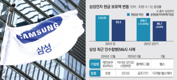 그럼에도 현금성 자산 규모는 단일 대형 M&A를 추진할 수 있는 충분한 수준이다. 삼성은 하만 인수 이후 8년간 글로벌 M&A 시장에서 대규모 거래를 잠시 멈췄지만, 최근 로봇·전장·헬스케어 등 신성장 분야에서 행보를 넓히고 있다. 상반기에는 레인보우로보틱스를 종속회사로 편입했고, 스웨덴의 냉난방공조 전문기업 플랙트그룹과 미국 마시모 오디오 사업 인수 계약을 체결했다. 지난달에는 미국 디지털 헬스케어 기업 젤스(Xealth) 인수 계약에도 나섰다.