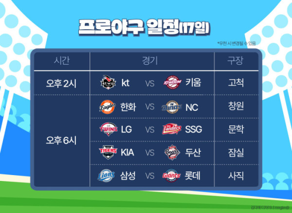 만루홈런을 주고받은 SSG 랜더스와 LG 트윈스. 승리는 홈팀 SSG였다. SSG가 LG를 상대로 역전승을 따내며 3위와 격차를 반 경기 차로 좁혔다. SSG는 전날 경기 5회 말 기예르모 에레디아의 만루 홈런과 6회 말, 8회 말 적시타를 때리며 LG를 상대로 역전승했다. 이날 선발 투수는 최민준과 임찬규. SSG가 위닝시리즈를 달성하며 3위 자리를 추격할지, LG가 1위 수성에 성공할지 주목된다.