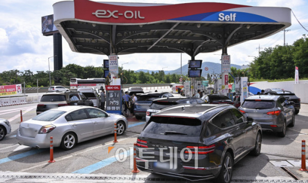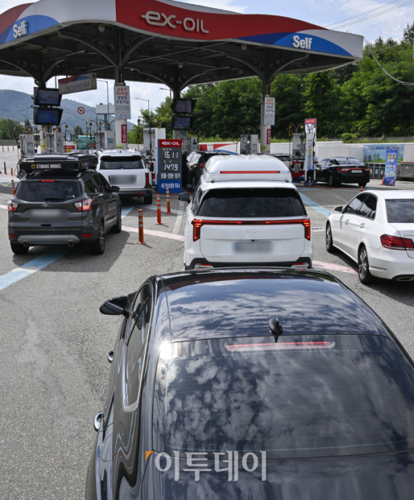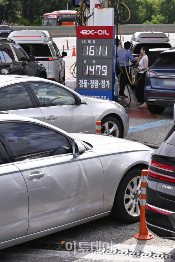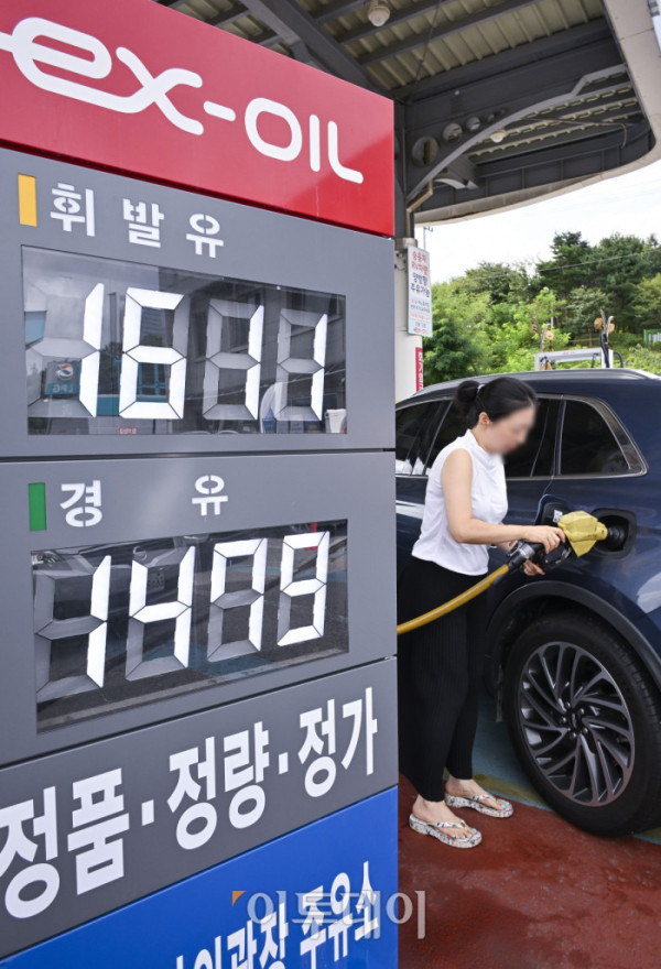 국내 주유소 휘발유·경유 가격이 동반 하락했다. 한국석유공사 유가정보시스템 오피넷에 따르면 8월 둘째 주 전국 주유소 휘발유 평균 판매가는 지난주보다 리터 당 1.7원 내린 1668.2원을 기록했다. 경유 평균 판매 가격은 전주 대비 0.1원 내린 1538.2원을 기록했다. 17일 서울 만남의광장 주유소에 유가정보가 게시돼 있다. 조현호 기자 hyunho@