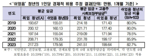 통계청 경제활동인구조사 자료에 따르면, 최근 5년간 ‘쉬었음’ 청년의 규모는 2019년 약 36만 명에서 40만1000명으로 증가했다. 쉬었음 청년 규모는 코로나19의 영향으로 2020년 44만8000명으로 최고치를 기록한 후 감소세를 보였으나, 2023년 다시 증가했다.