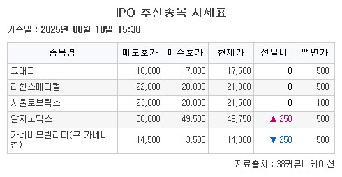 18일 38커뮤니케이션에 따르면 비상장 주식 시장이 보합이었다.