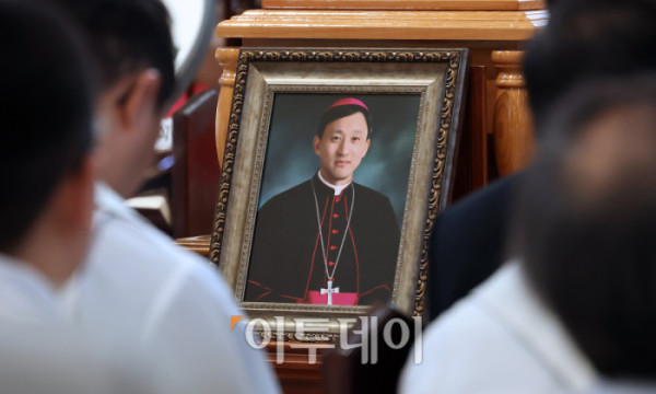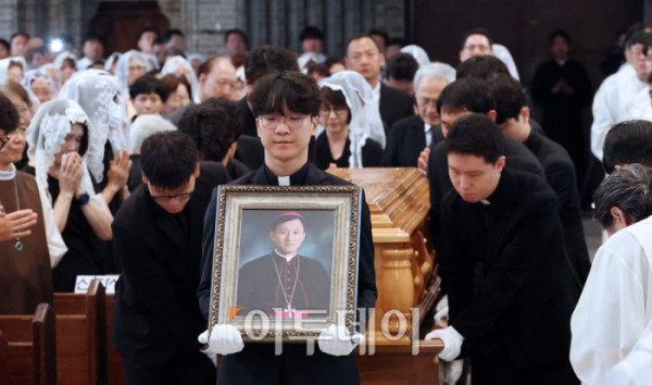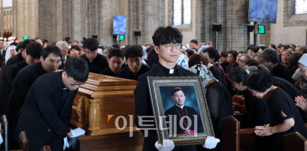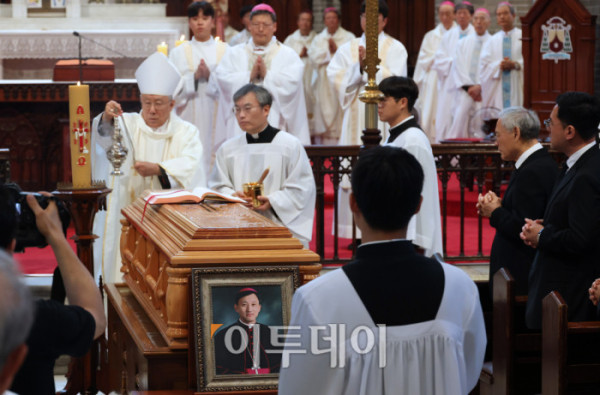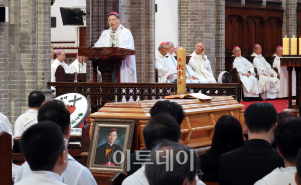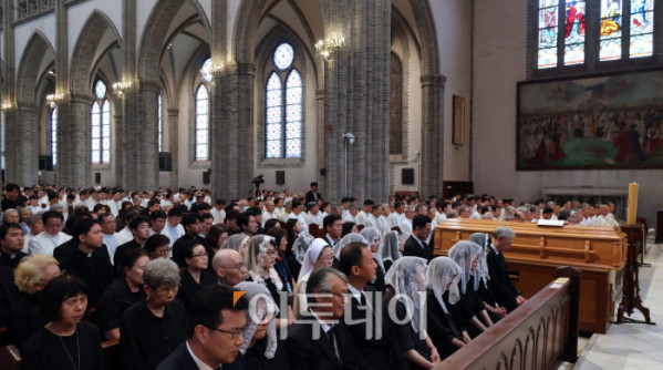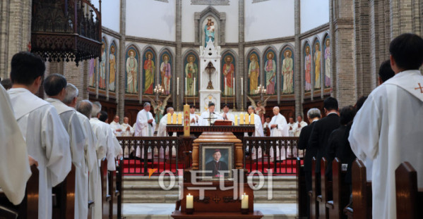 ▲천주교 서울대교구 故 유경촌 주교 장례미사가 18일 서울 중구 명동대성당에서 엄수되고 있다. 사진공동취재단
