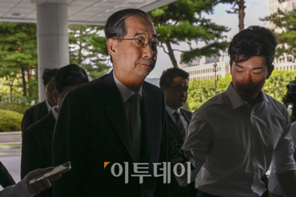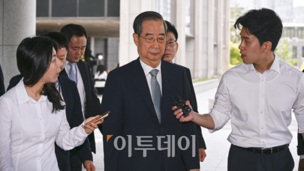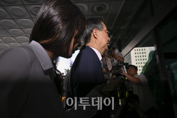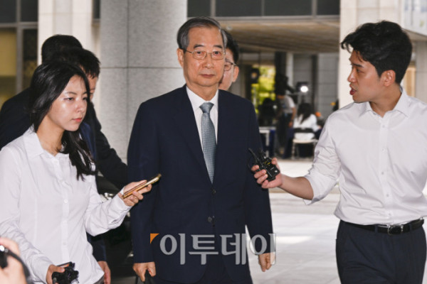 ▲12·3 비상계엄 사태에 가담·방조한 혐의를 받는 한덕수 국무총리가 19일 서울 서초구 서울고등검찰청에 마련된 내란특별검사팀 사무실에 피의자 조사를 받기 위해 출석하고 있다. 조현호 기자 hyunho@