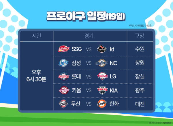 SSG가 1.5 게임 차 KT를 원정에서 상대한다. 19일 양 팀 선발 투수는 김광현과 오원석. '토종 에이스' 김광현이 어깨 염증 부상을 회복하고 돌아왔다. 김광현이 복귀해 팀을 3위로 도약시킬지 관심이 쏠린다. 친정팀을 상대하는 오원석은 전반기 10승을 거두며 팀 에이스로 발돋움했다. 좌완 선발 대결에서 누가 웃을지 기대를 모으고 있다.