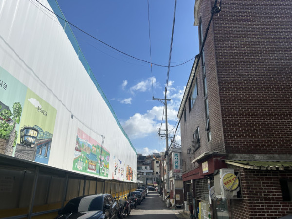 현장에 서면 묘한 대조가 느껴진다. 단지 동쪽과 남쪽으로는 여전히 낡은 저층 주택과 상가 건물이 어지럽게 들어서 있다. 반면 북쪽으로는 2018년 준공한 ‘래미안 이수역 로이파크’가 왕복 4차선을 두고 자리한다. 신축 아파트와 노후 주거지가 맞닿아 있는 전형적인 도심 속 재개발 현장의 풍경이다.