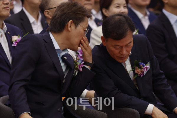 ▲윤한홍(오른쪽) 국회 정무위원회 위원장과 권대영 금융위원회 부위원장이 20일 서울 중구 동대문디자인플라자(DDP)에서 열린 2025 금융권 공동채용 박람회 개막식에서 대화를 하고 있다. 조현호 기자 hyunho@
