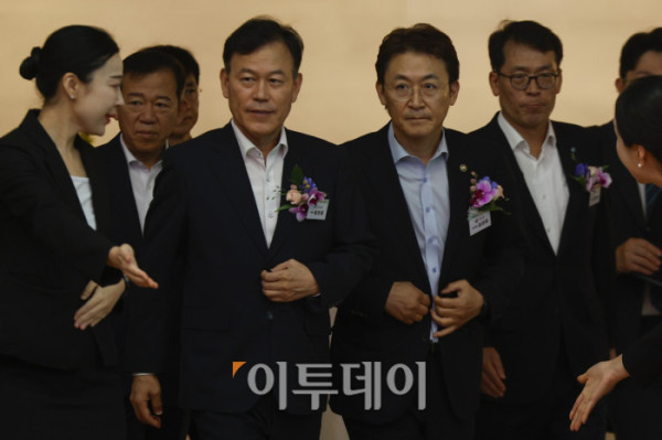 ▲윤한홍(왼쪽 세 번째) 국회 정무위원회 위원장과 권대영(왼쪽 네 번째) 금융위원회 부위원장이 20일 서울 중구 동대문디자인플라자(DDP)에서 열린 2025 금융권 공동채용 박람회 개막식에 참석하고 있다. 조현호 기자 hyunho@